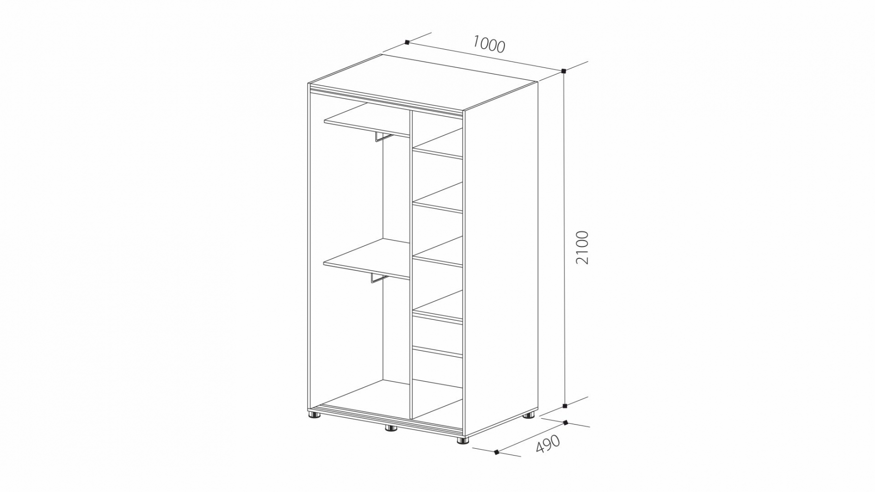 ДхВхШ: 1000х2100х490 мм.